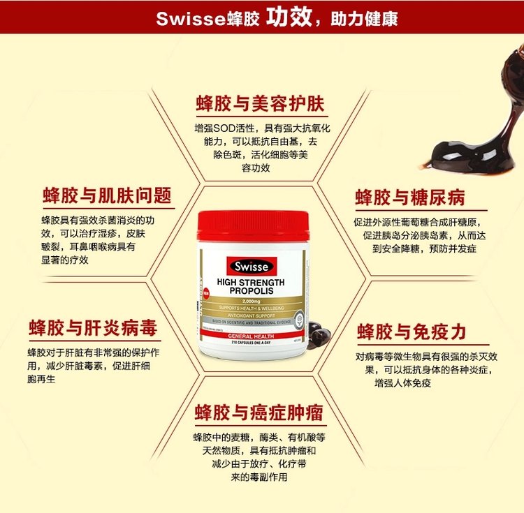 【产品名称】Swisse 高浓度蜂胶软胶囊2000mg 210粒